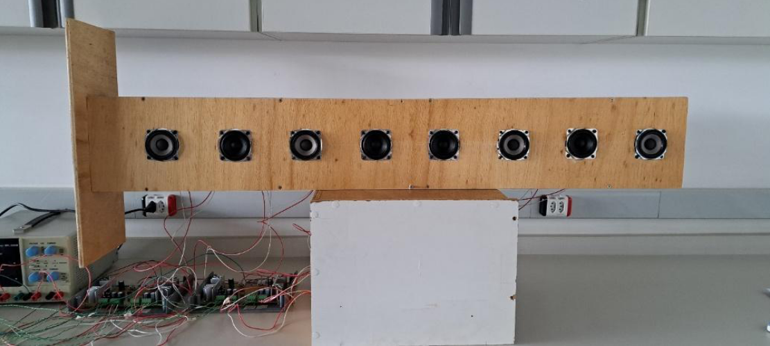 Com o array montado de acordo com a figura acima, foi iniciado o processo de calibracao de cada auto-falante.